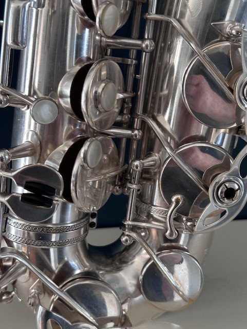 Saxophone alto Selmer super action « sba » argenté gravé 1950